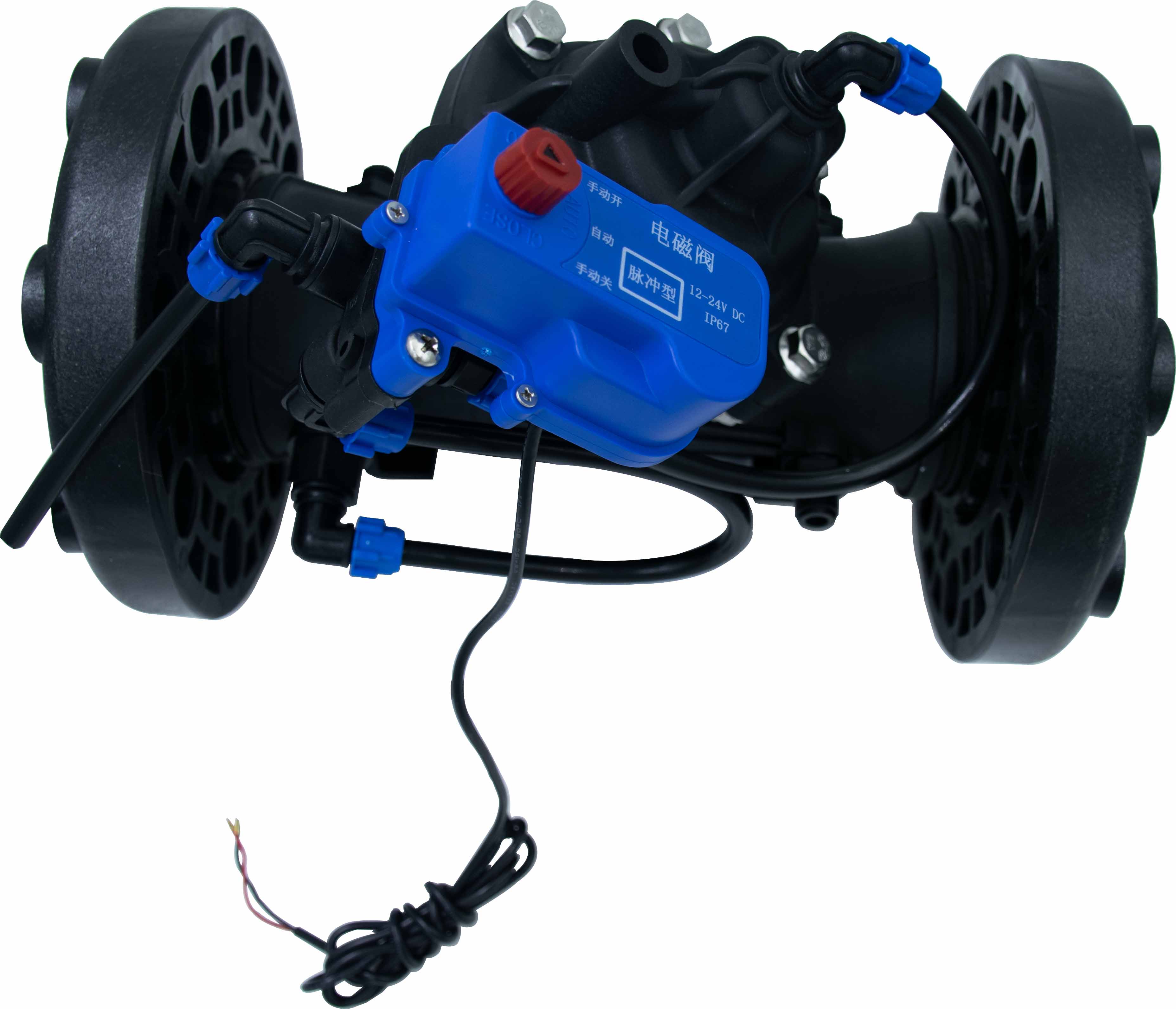 農(nóng)業(yè)灌溉系統(tǒng)中結(jié)合了水肥一體化與反沖洗過(guò)濾功能的網(wǎng)式過(guò)濾器。